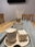 Botellón XL de vidrio labrado con detalle en dorado.