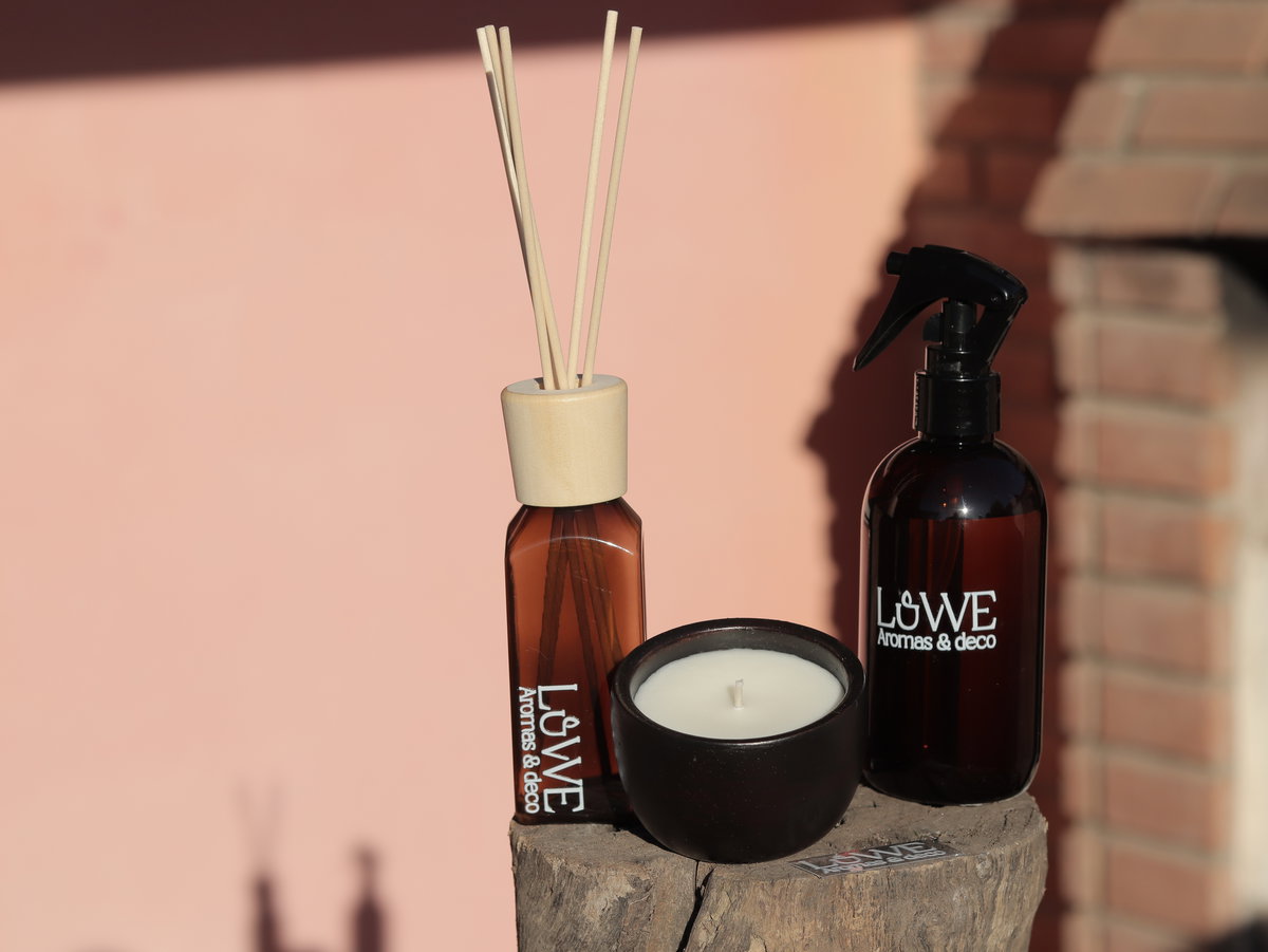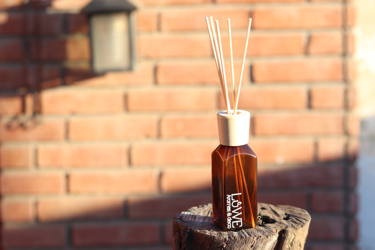 Difusor aromático en recipiente de plástico, reutilizable, con tapa de madera.
