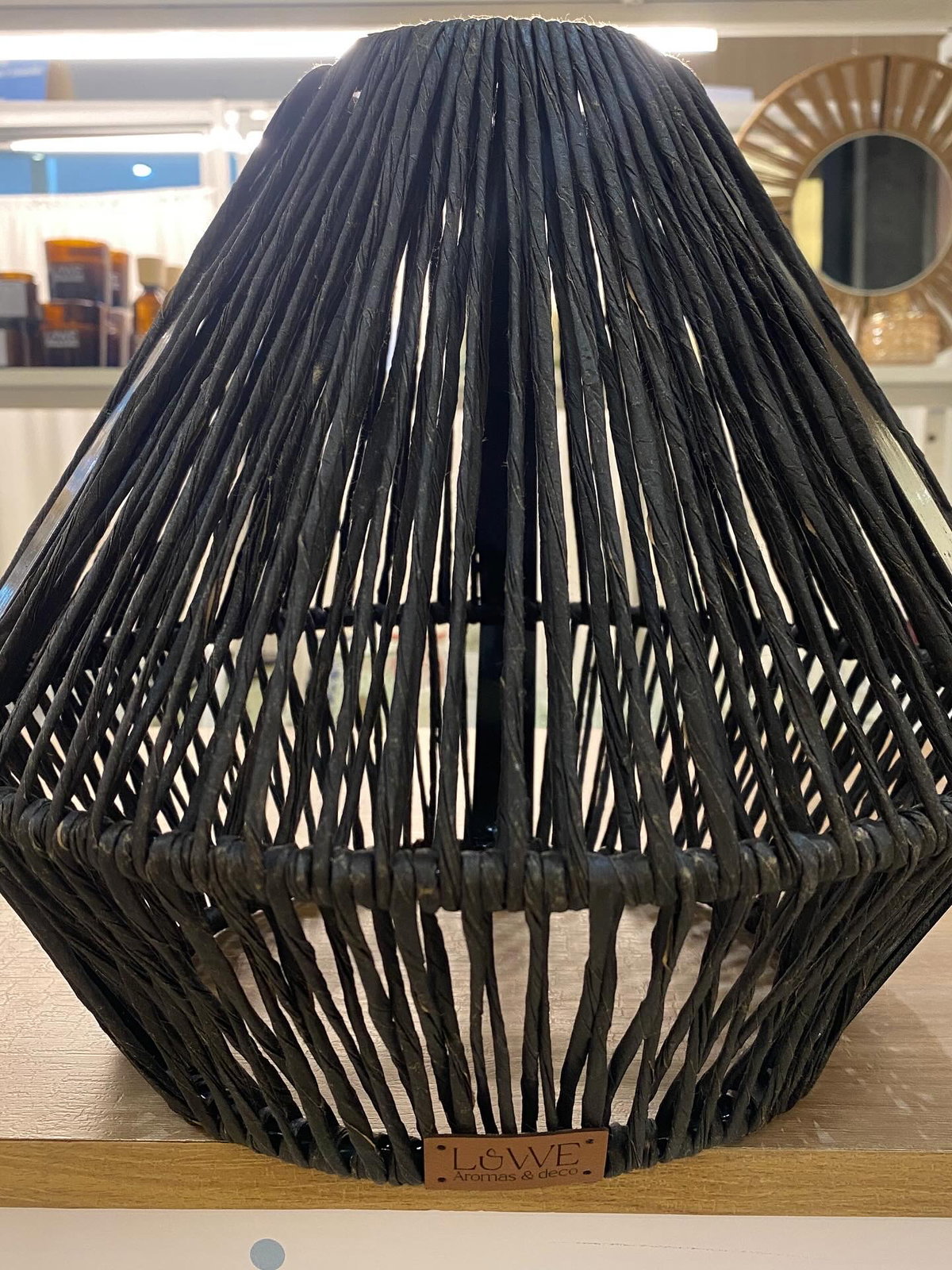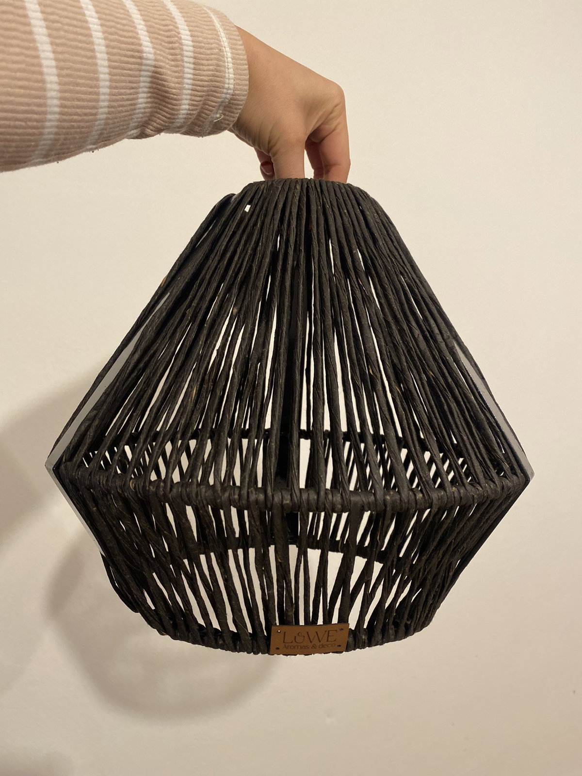 Lámpara en forma de diamante encordada en kraft marrón o negro.
