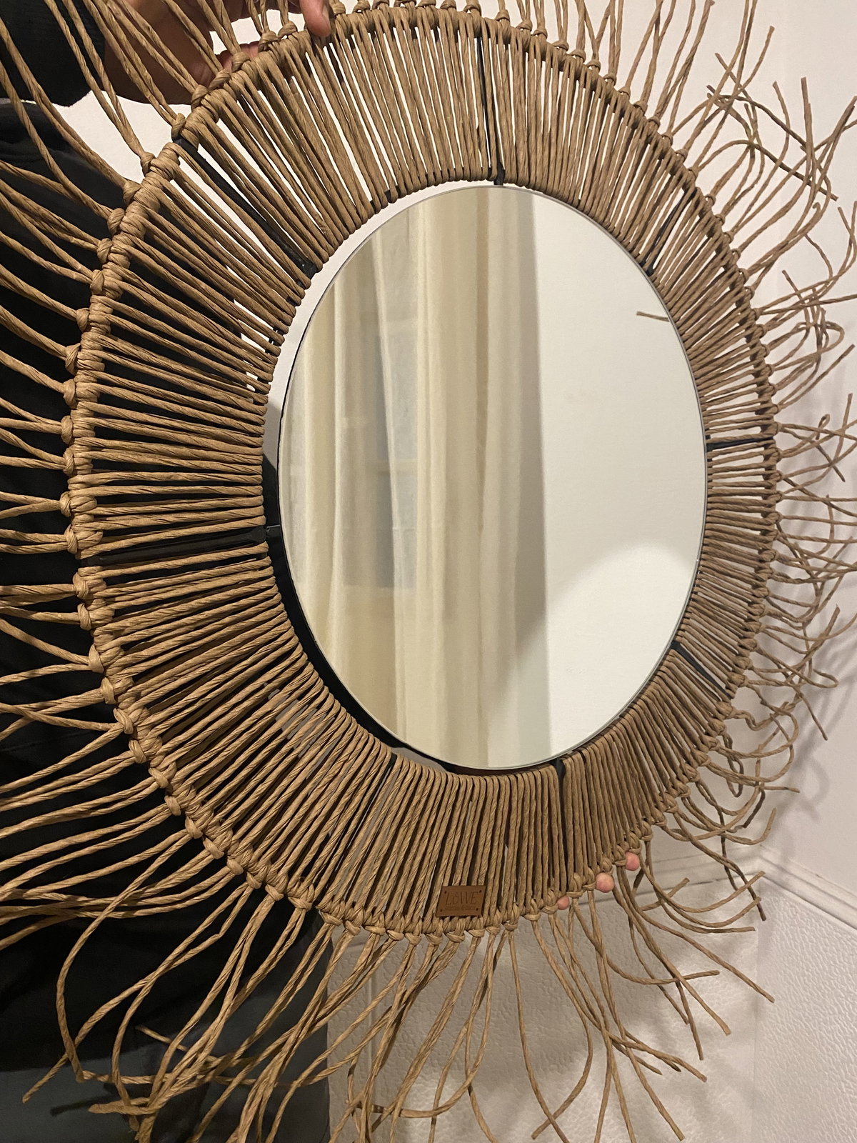 Espejo encordado en kraft marrón o negro, con tiritas.