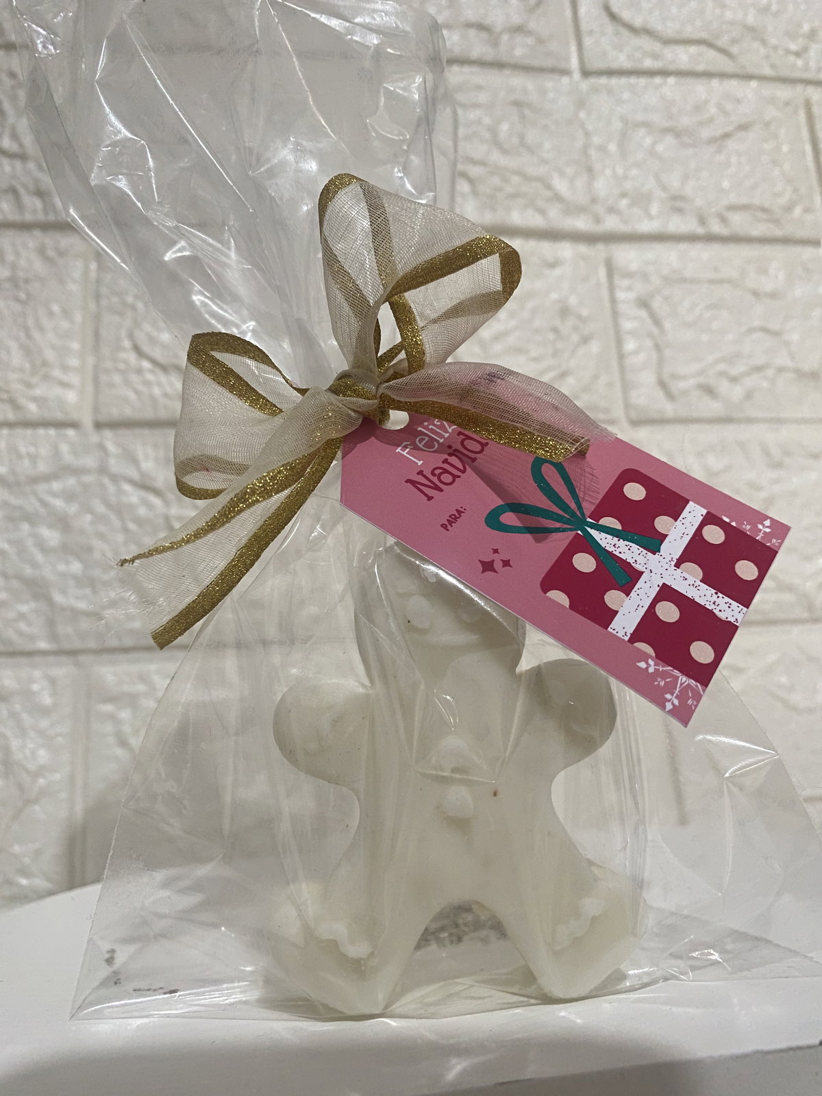 Presentación: bolsita de polipropileno transparente con moño y tarjeta navideña.