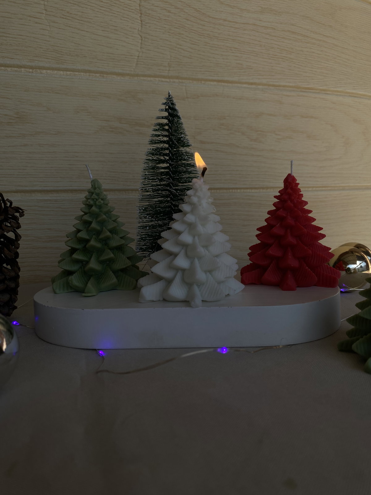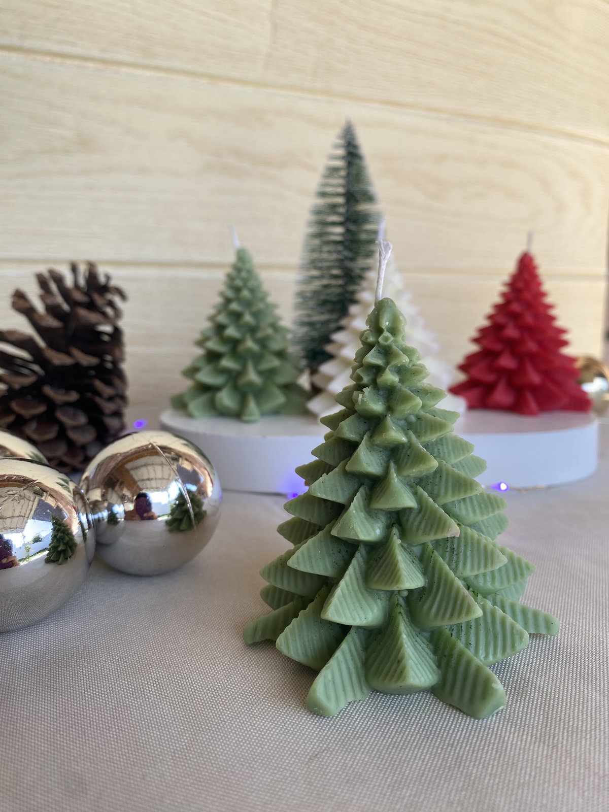 Vela aromática en forma de pino navideño.